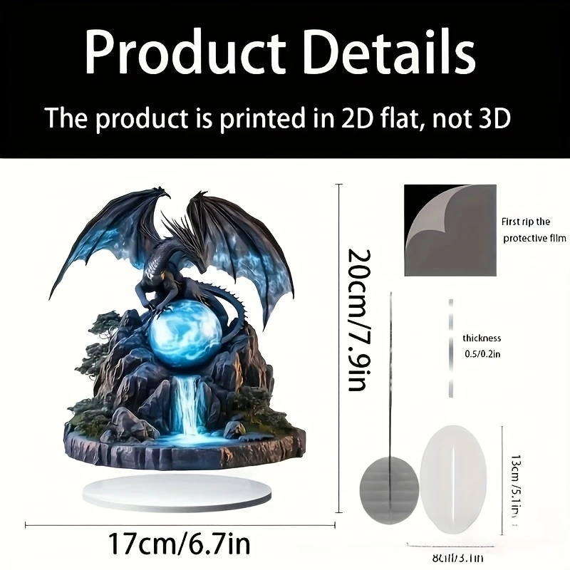 2D Bohemian 8in Acrylic Black Dragon Wings Desktop Decoration Creative Dark Theme Art Model Cool Gift Decor Photography Props