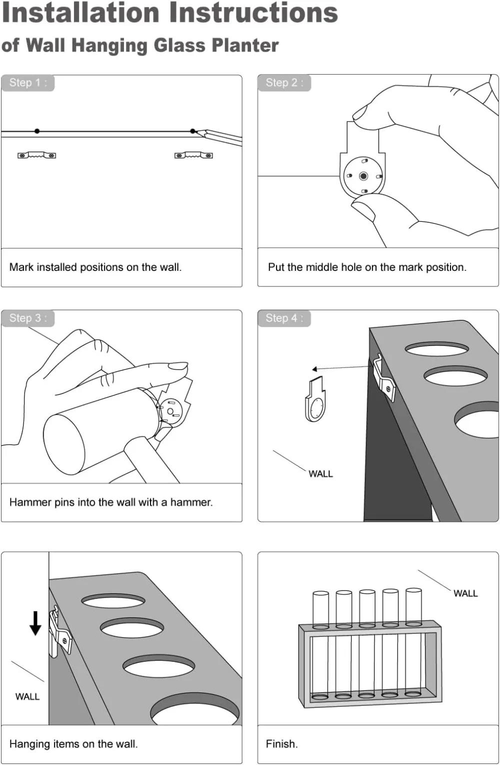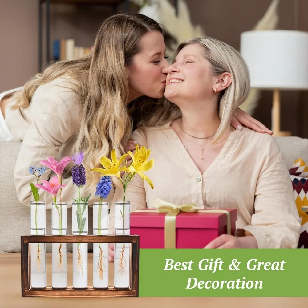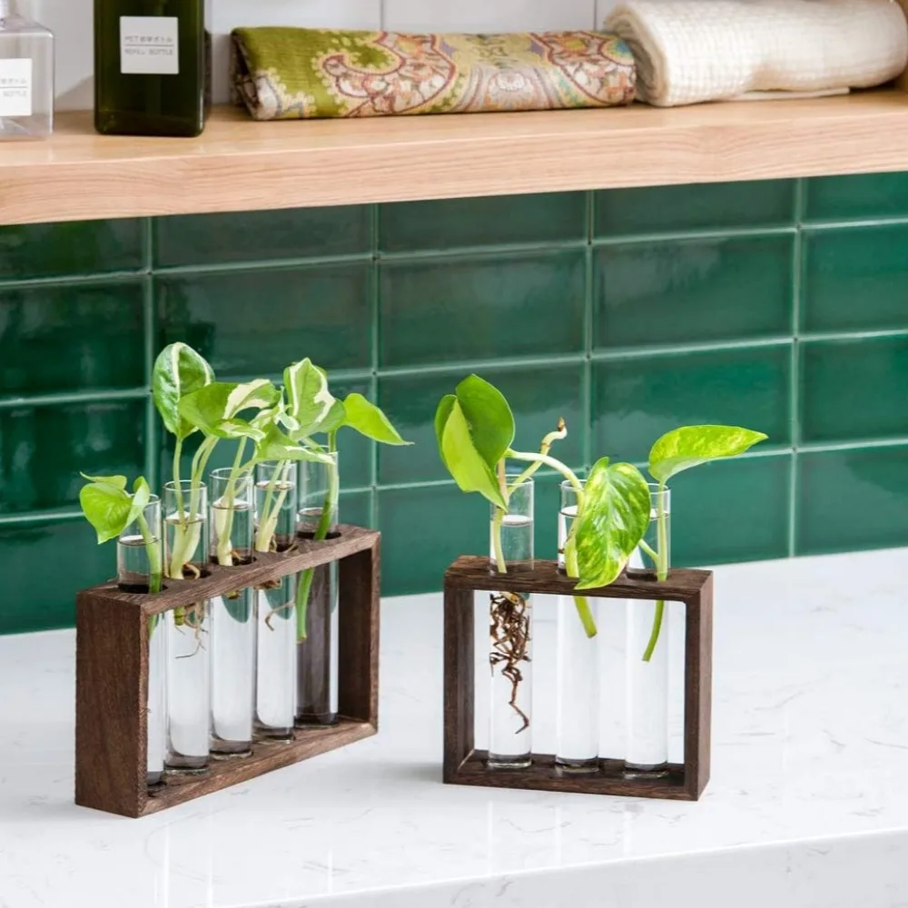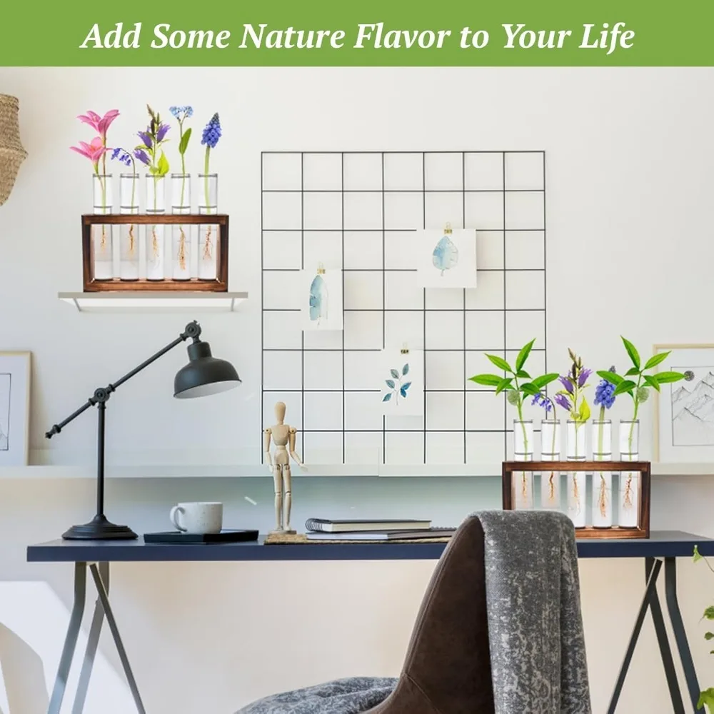3/5 Tubes Wall Hanging Hydroponic Plant Propagation Glass Vase with Wooden Stand Desktop for Home Office Planter Garde Decor