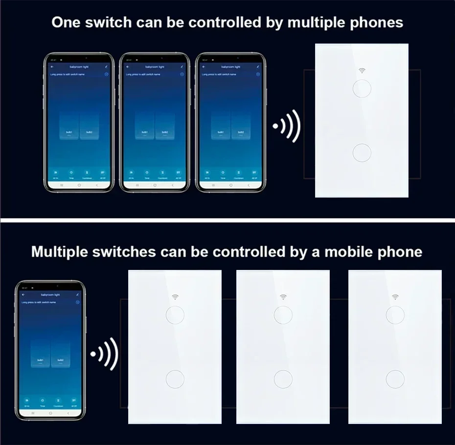 Tuya Smart Life Light Switch WiFi Touch Sensor APP Remote Control No Neutral Wire 110V 220V for Alexa Google Home Ailce